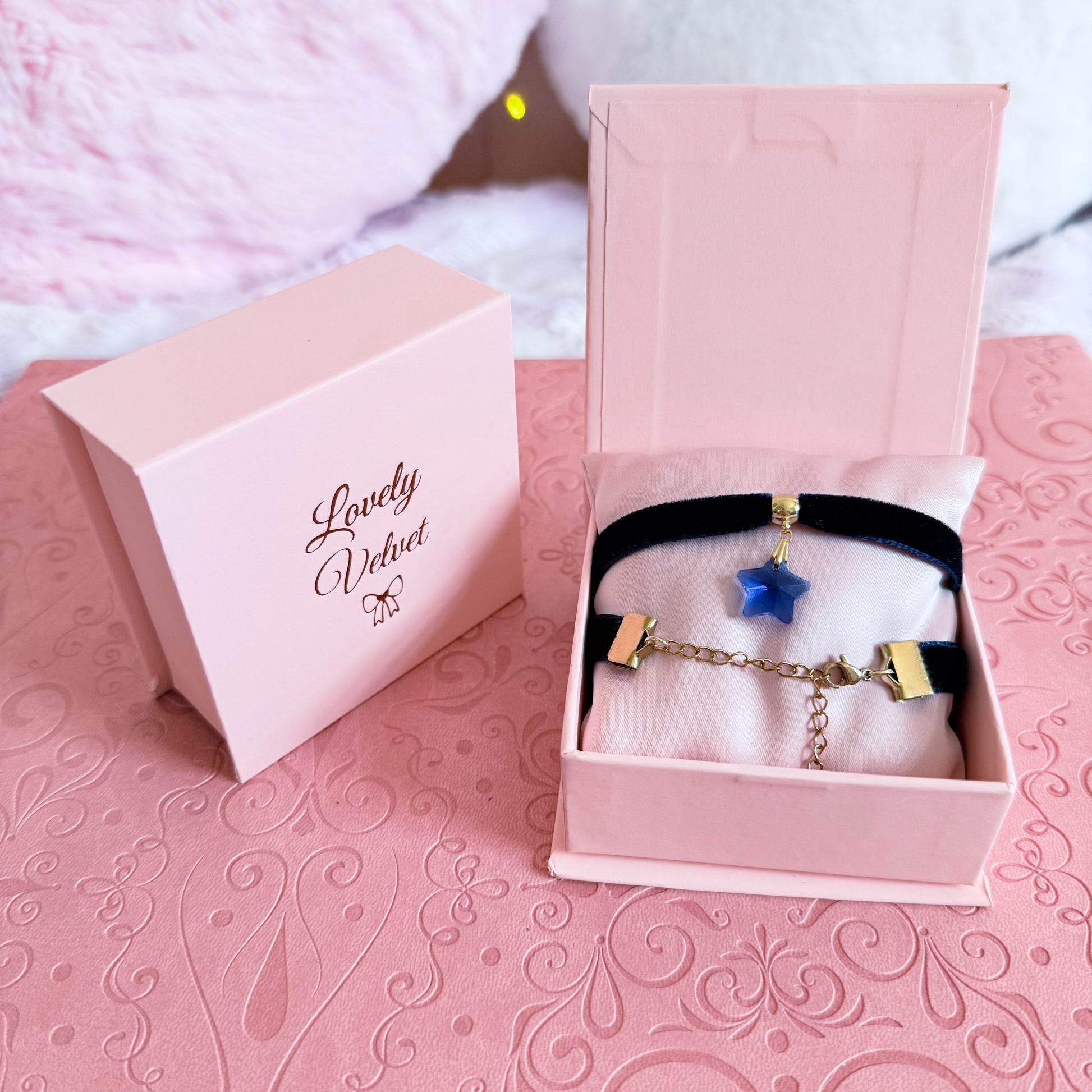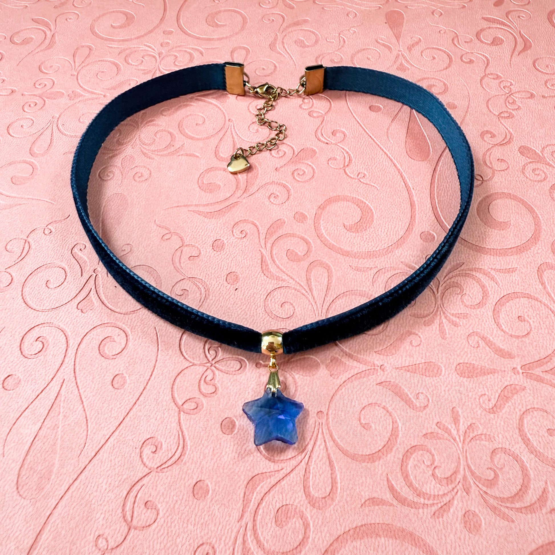 Shine with celestial elegance. Our Blue Crystal Star Velvet Choker Necklace features a faceted glass star pendant that catches the light with every movement, paired with soft, high-quality Swiss velvet for a chic and comfortable fit.