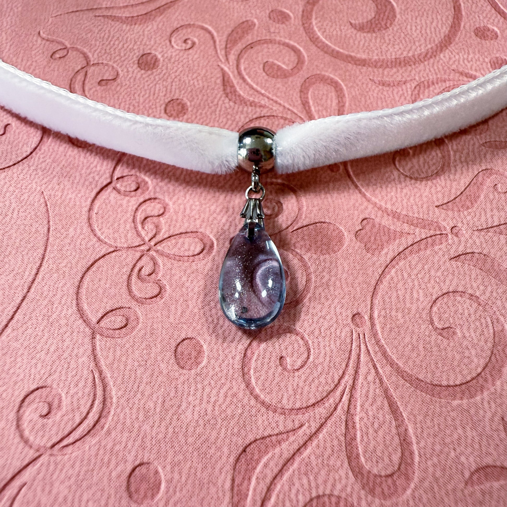 Glass Teardrop Velvet Choker Necklace – Cornflower Mist