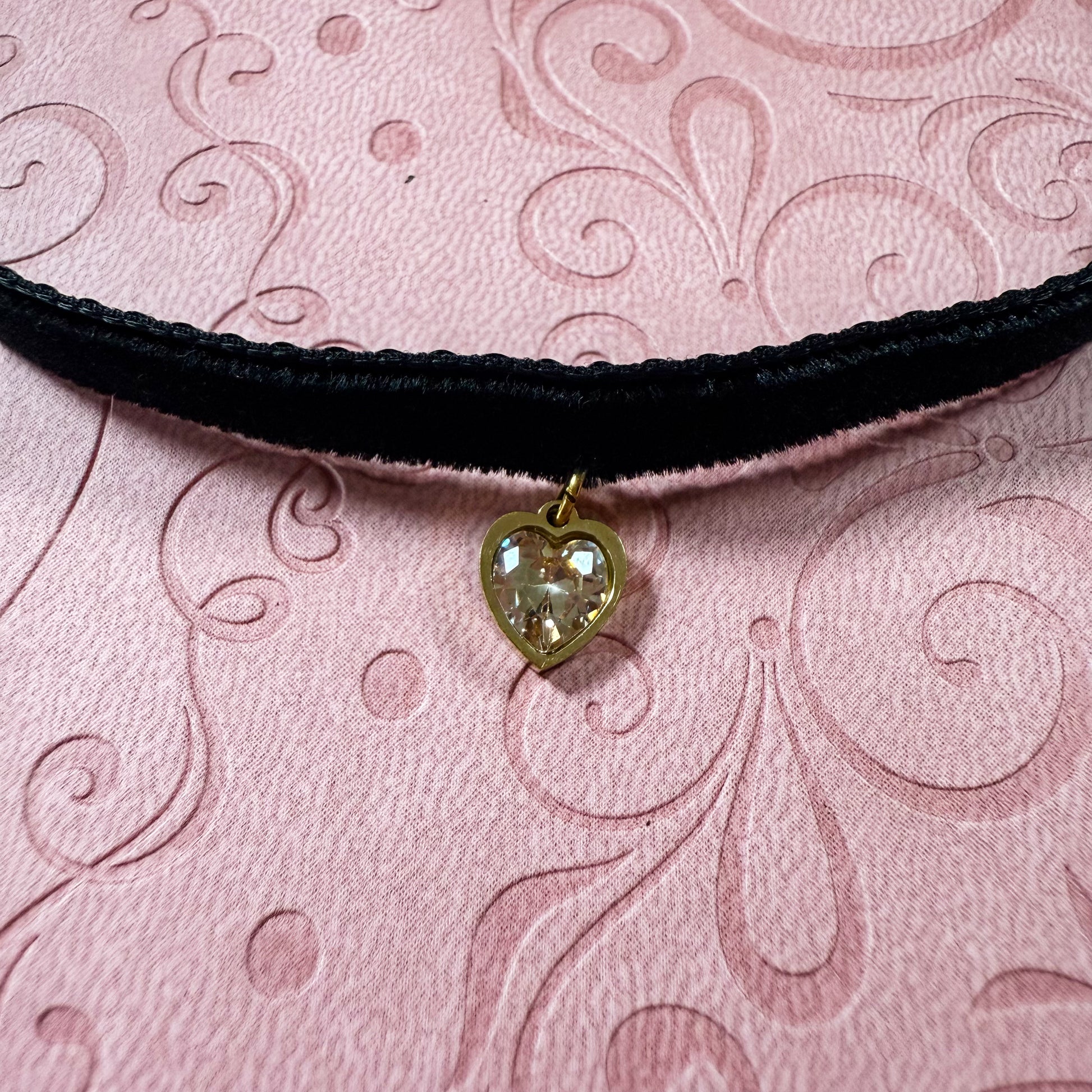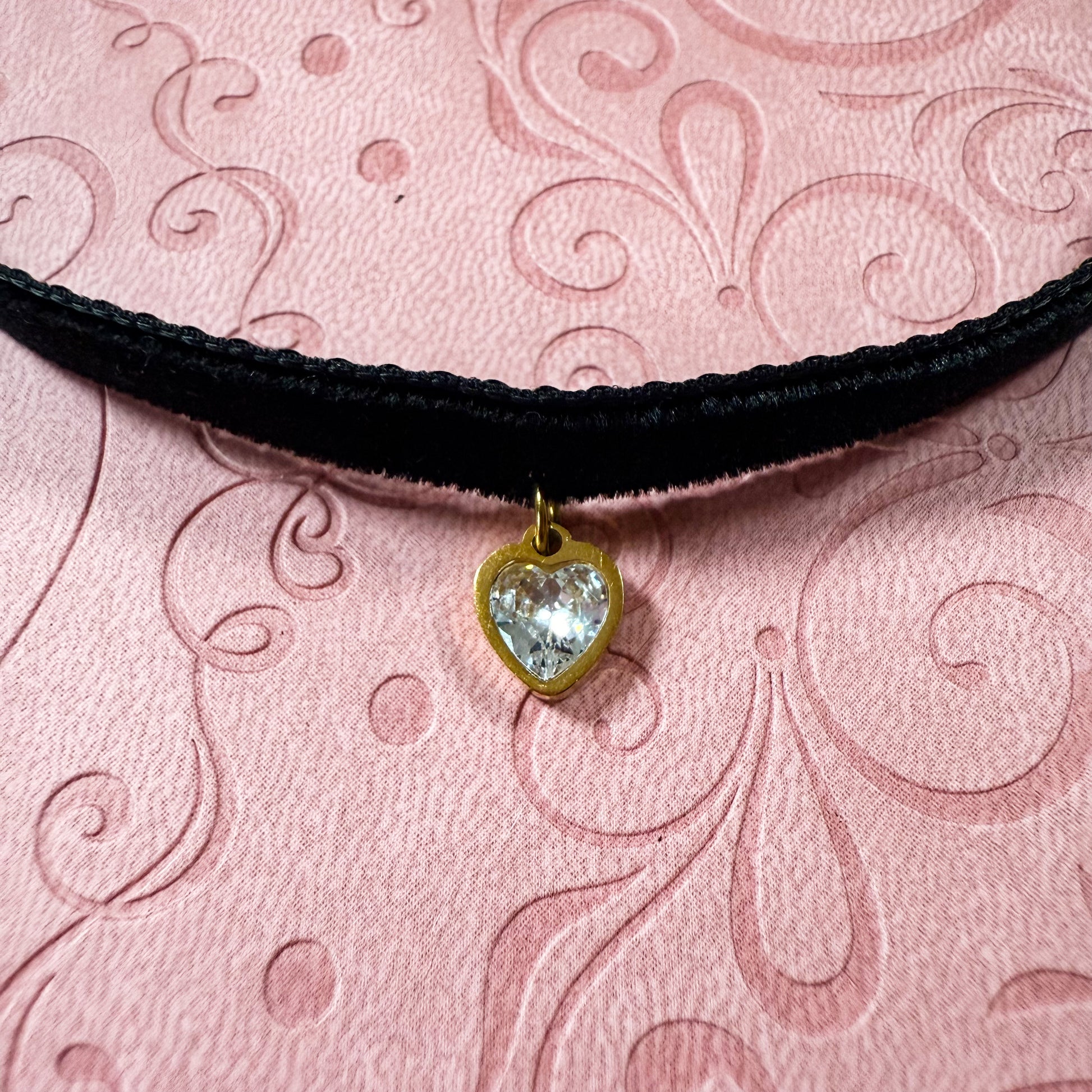 Gold Heart Gem Velvet Choker Necklace