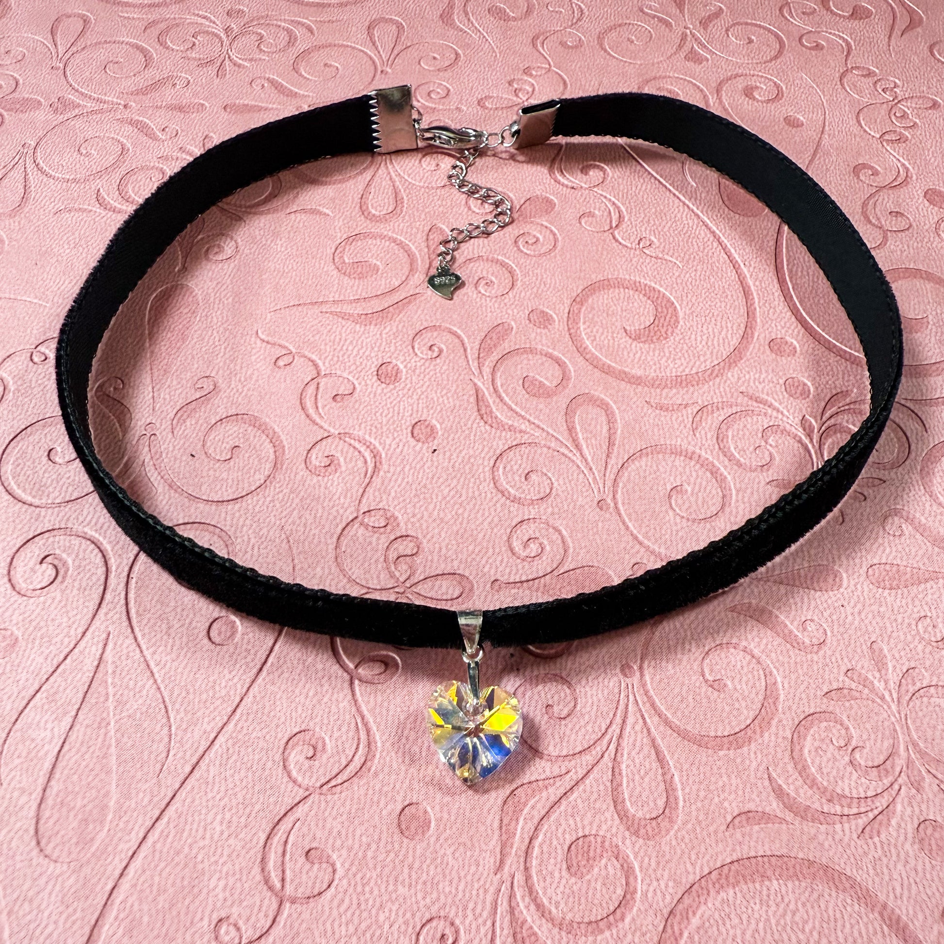 Limited Edition: Sterling Silver Crystal Heart Velvet Choker Necklace