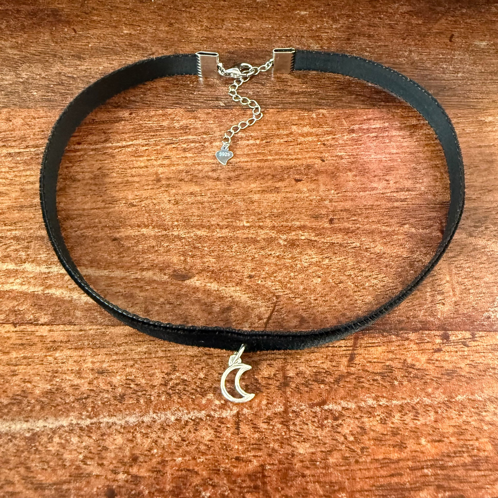 Limited Edition: Sterling Silver Hollow Moon Velvet Choker Necklace